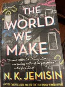 I was reading a book out in the world and an observer asked me what it was. The City We Became, I told her. Then she wanted to know what it was about. “Blah, blah, blah,” I said, ending with, “It’s about New York City.” I have now finished the second, and final, installment in the series by N. K. Jemisin, The World We Make. I must amend my answer. It’s not about New York City. It is a love song to cities.